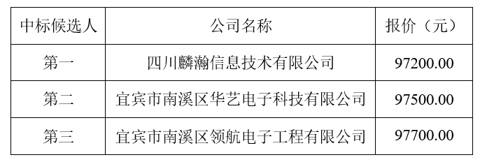 宜宾市南溪区融媒体中心机房精密空调采购项目已于2025年10月29日15:00时开标,现将评标结果公示如下: